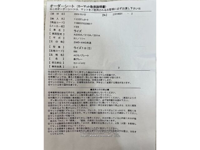 トヨタ ライズ 令和1/11~ 2WD/4WD共通 新品未使用フロアマット