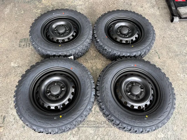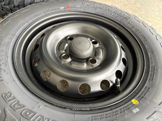 ●中古●ホイール:ダイハツ純正スチール 12×4J PCD100/4H 自家塗装品(マットブラック)●タイヤ:ヨコハマジオランダーM/T 145/80R12 4本×新品●ハイゼット・アトレー・エブリィ