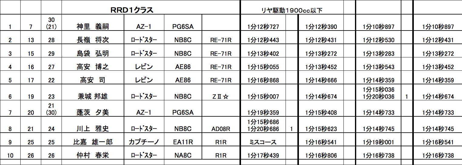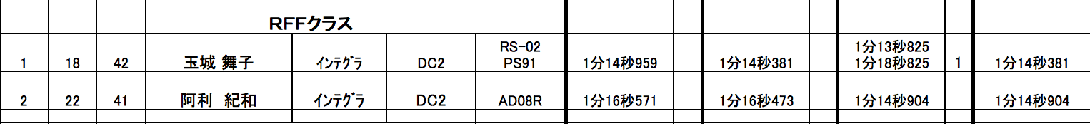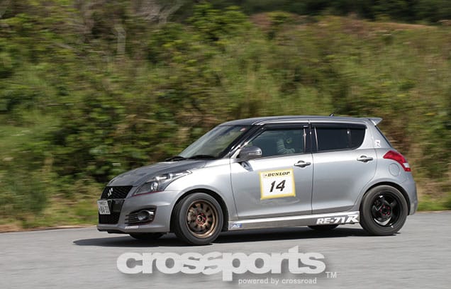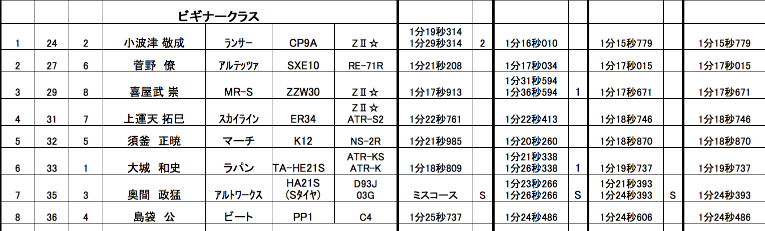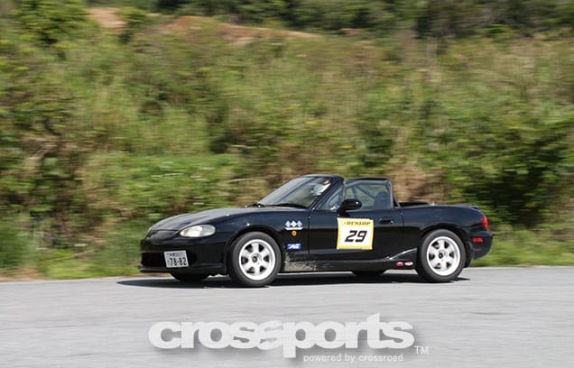 今回は本土からエレガントスポーツアジュール川村代表が設定した、テクニカル且つハイスピードなレイアウト。ミスコースも少ない覚えやすいレイアウトだが、攻めすぎてパイロンタッチの罠にかかる選手も。また、他にも本土から全日本N3クラスで活躍の天野選手、SCクラスチャンプの大橋選手に今回はマツダウィメンズモータースポーツプロジェクトで活躍中の女性ドライバー兼アナウンサーの蓬茨(ほうし)夕美が参加。MC久野氏の大ファンでもある蓬茨さんはMCのコラボでも大活躍した。