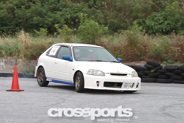 前半にパイロン間隔の狭い超テクニカルセクションを設置。中盤も少々我慢が続き、最後も三角定常円からターンしてゴールと四駆にはキツイ設定。各クラスでもサイドターンが決まったもん勝ちになってしまいがちだが、逆にいえばパワー関係なしにテクニック勝負となる。車の優劣よりも腕の差で決まるジムカーナの醍醐味と原点を知るきっかけにもなった。