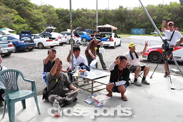 3月4月が不成立となったRRD2、5月からきっちり3連勝で連続シリーズチャンプに大手を掛けたのは、SW20登川選手。今回からマシンをチェンジ(クーラー付き)してきましたが、あっさり乗りこなして第2HEAT、第3HEAT共にクラス唯一の1分12秒台を叩き出し今回も大差での優勝!2位は野村選手のS14シルビアでWエントリーの喜友名選手。5月の第3戦からこのマシンで参戦していますが、初の2位をゲットしていよいよ狙うは打倒登川選手となりました。3位はAE86石原昌行選手。今回も午前中のみの参戦で本番アタックは第2HEATの1本のみとなりましたが、野村選手の追撃を4/100秒なんとかかわして表彰台を死守しました。