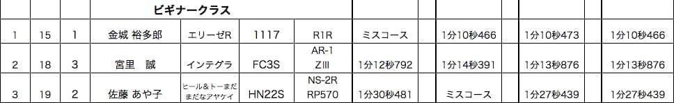 今回の優勝も先月で早々とシリーズチャンプを確定させた、NBロードスター島袋弘明選手。雨が降る中、オープン状態で待機する気合?を見せ見事優勝を勝ち取りました!。満点チャンプを目指してばく進中です!!5月の第3戦戦以来の2位をゲットしたのは、こちらもNBロードスター大城剛選手。ロードスターもセッティング、ドライビングとも詰めてきており、次回以降、優勝争いに絡みたいところです。3位はNBロードスター仲村選手。本人の体調不良と車両のメンテナンスで5月以来の参戦となりましたが、安定の走りで3位表彰台をGETしました。