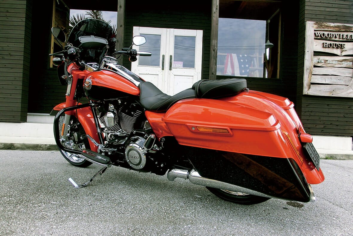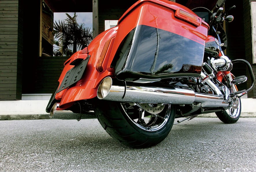 ボディ下部のストレートに走るエキゾーストバイブは見た目もサウンドも美しい。ハーレー好きにはたまらない瞬間を与えてくれる