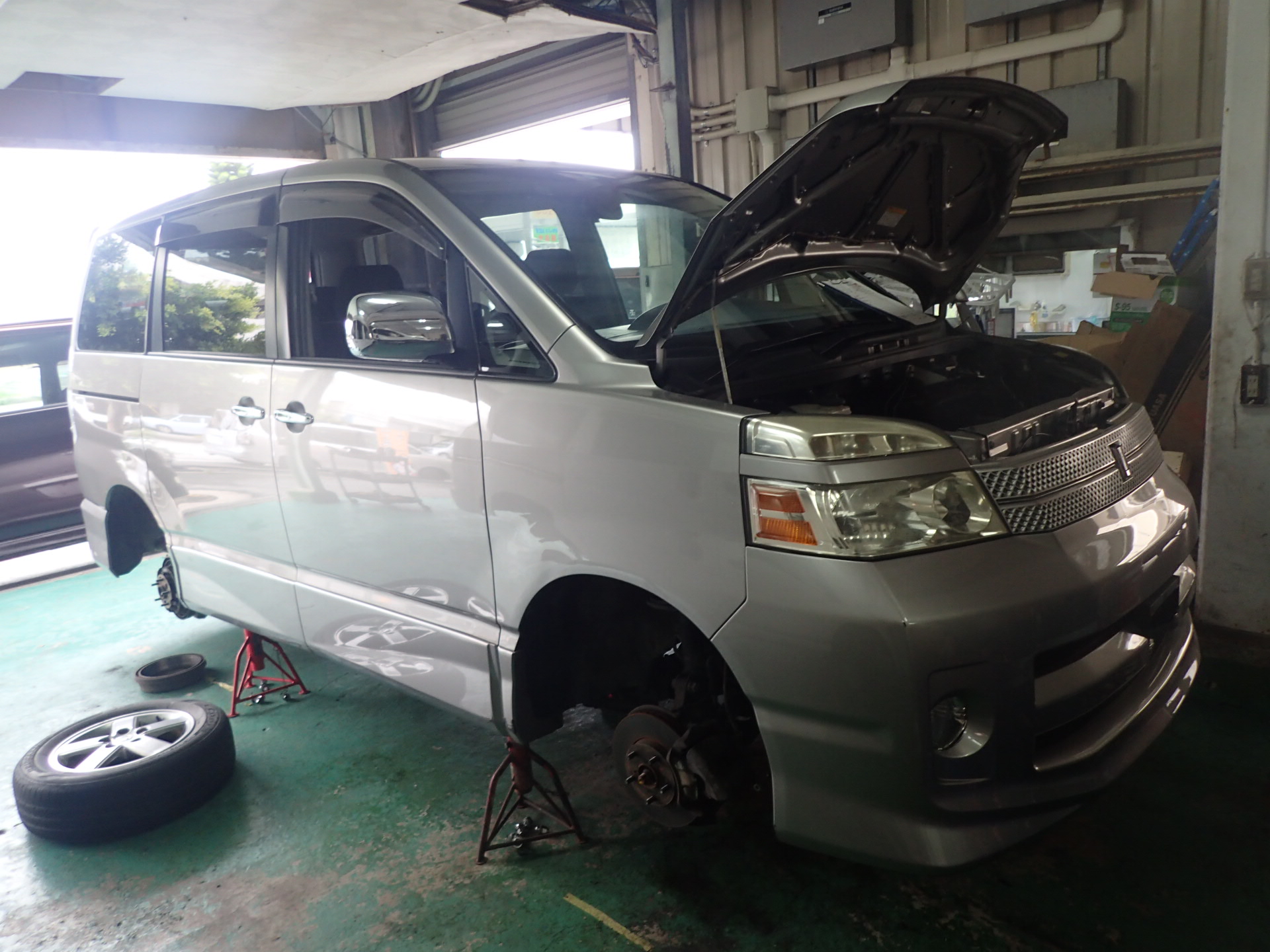 当店の車検は、ブレーキ廻りの分解清掃やグリスアップ、調整もしっかりいたします。パット交換の工賃も無料、ベルトの張り調整も車検時には無料にておこなっております。しっかりとしたメンテナンスでお客様に安全をお届けいたします。※代車貸し出し無料。※見積もり無料。
